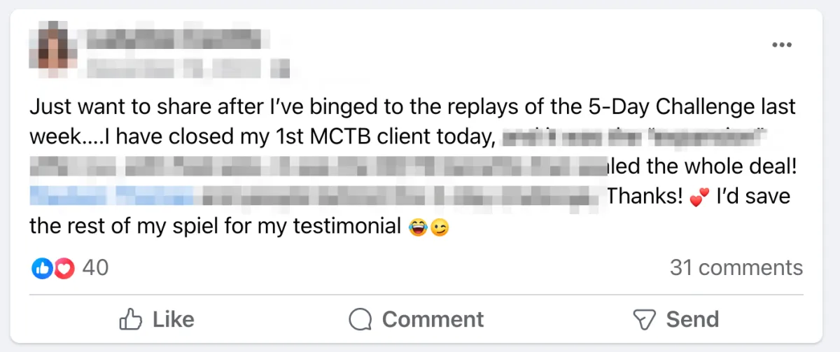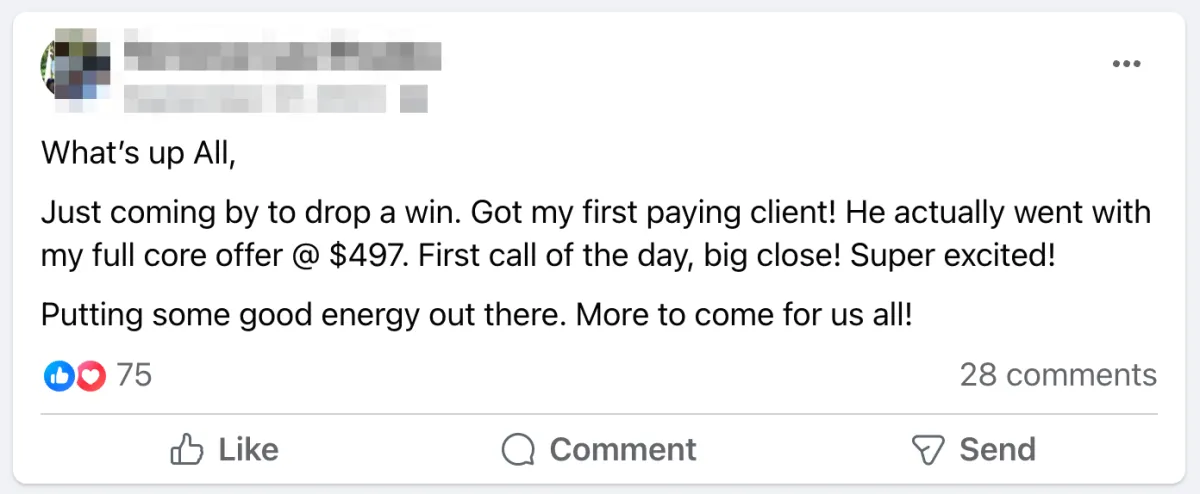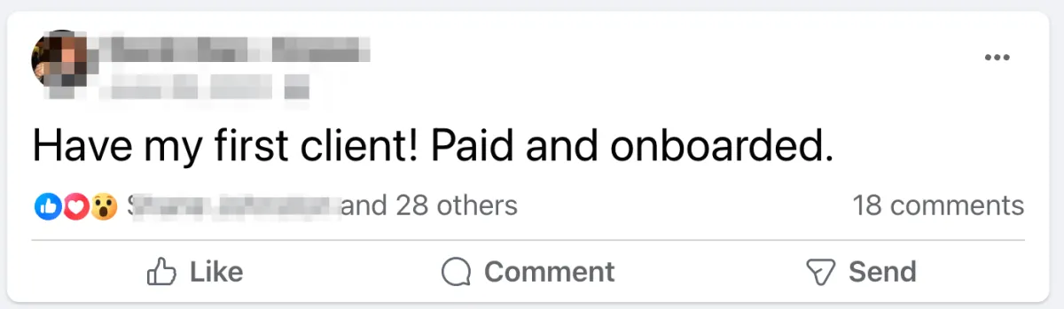 We'll be working with you every day… and our goal is to land your first client before the challenge is even over, just like some of the people you saw in the screenshots above.